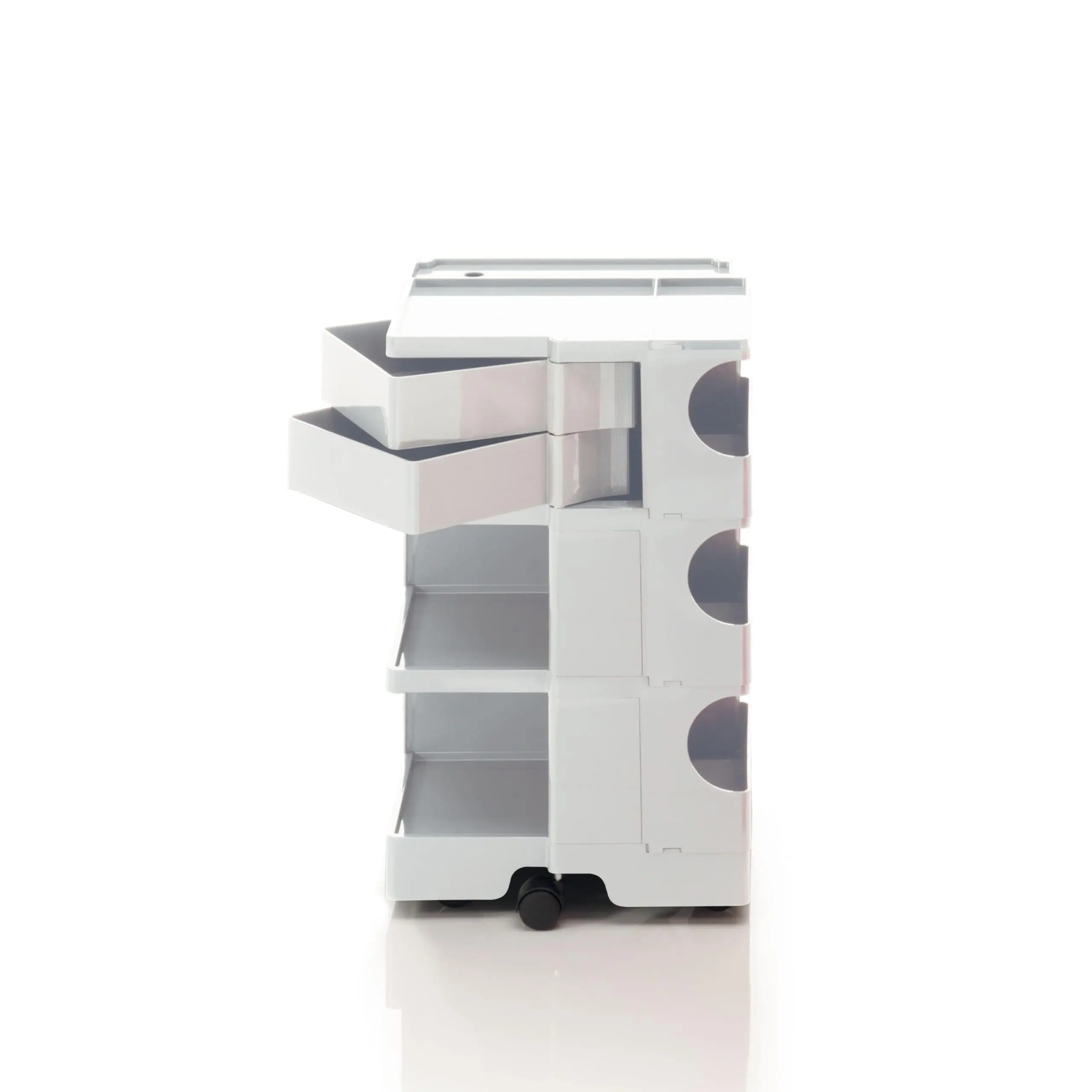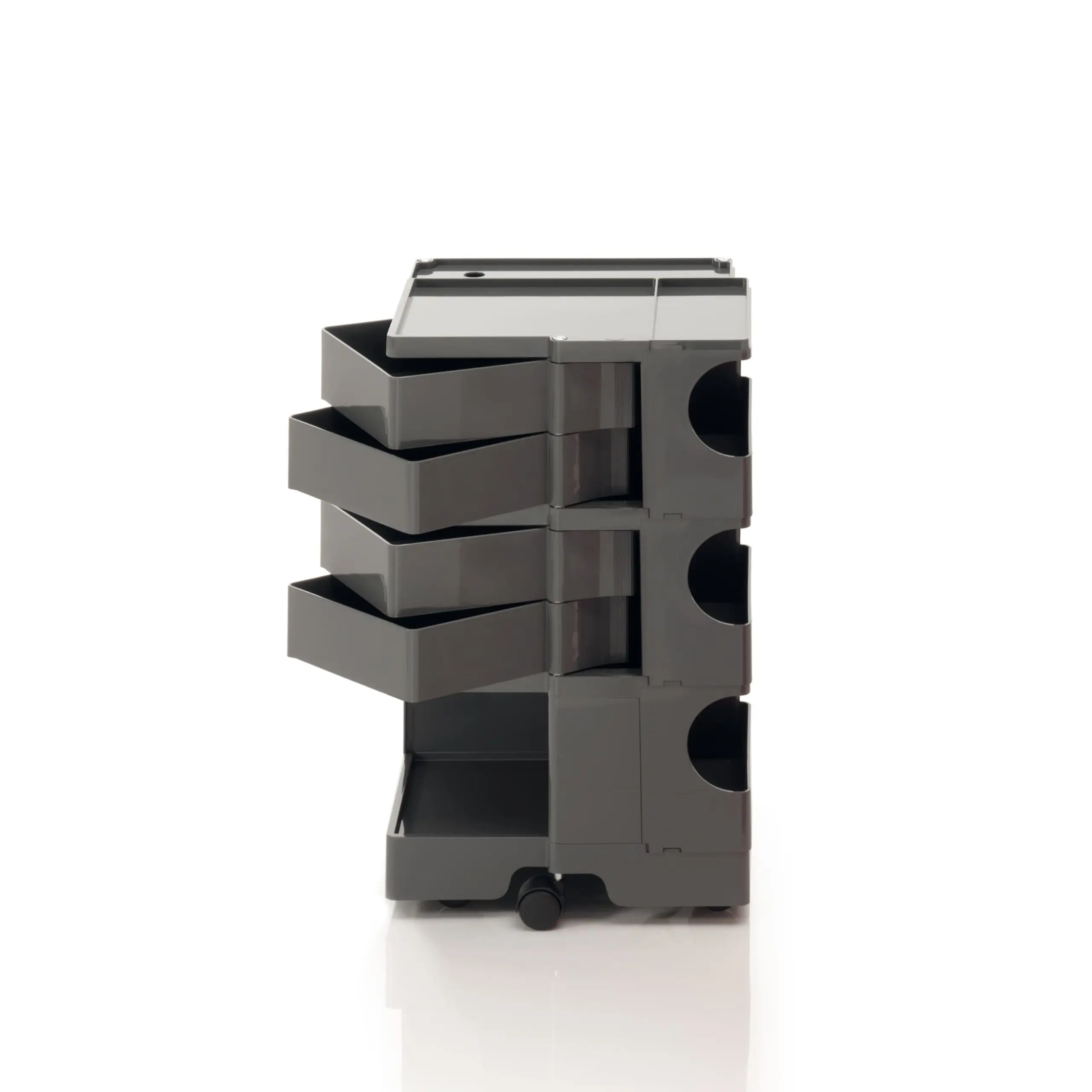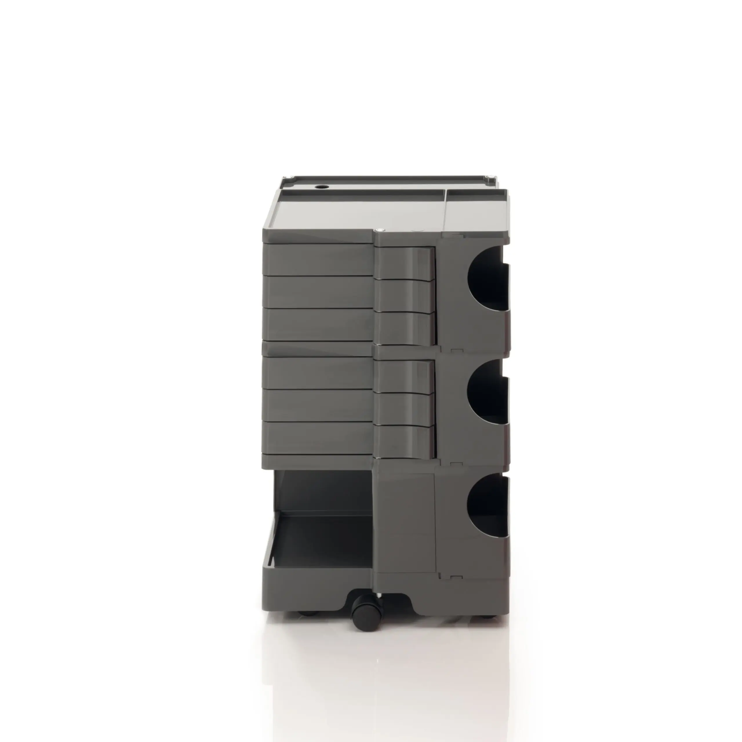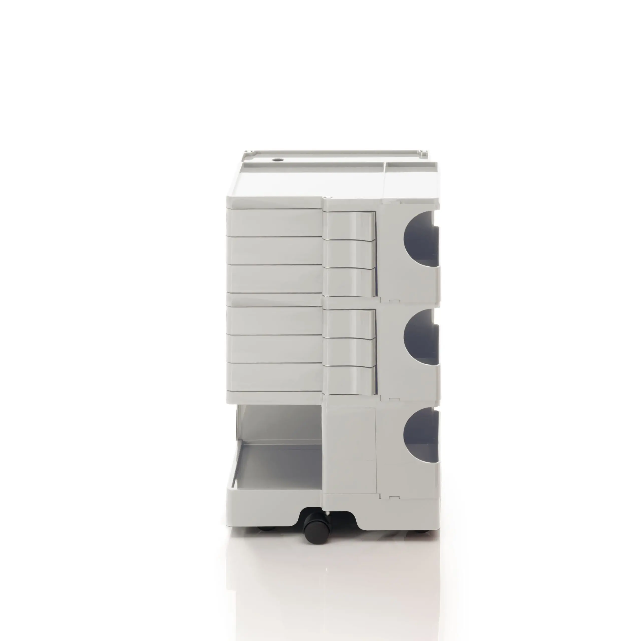 Ez a kocsis tárolóegység egy történelmi tervezői ikon, dinamikus megközelítéssel és nagyfokú sokoldalúsággal. Úgy tervezték, hogy garantálja az egyszerű függőleges modularitást, és a különböző konfigurációk széles skáláját kínálja a tárolás testreszabásához. A fiók- és polcmodulokból álló ABS műanyag szerkezet 5 polipropilén forgó görgőre van szerelve, és 4 különböző magasságú megoldást kínál. A New York-i MoMA és a milánói „Triennale” állandó gyűjteményének része, 1971-ben Smau-díjat kapott.