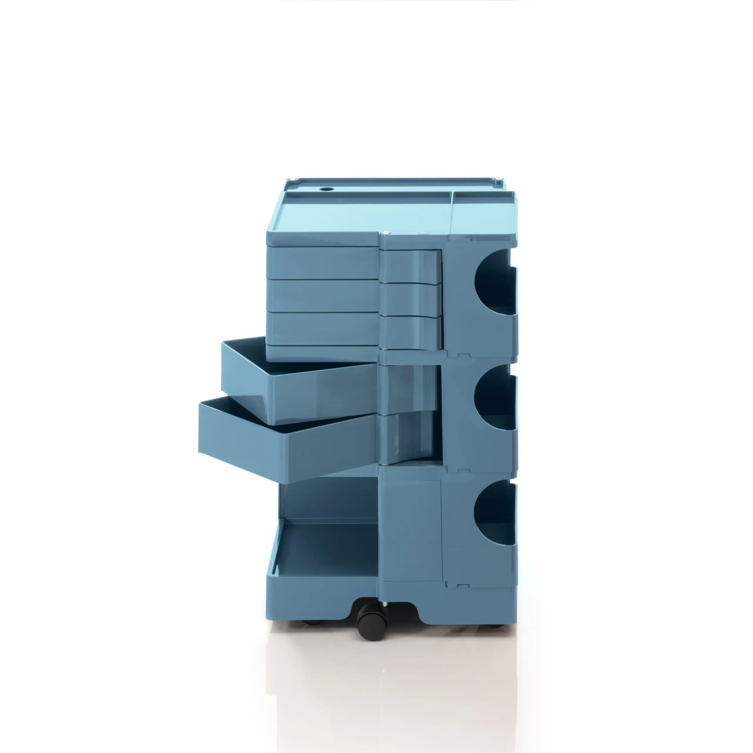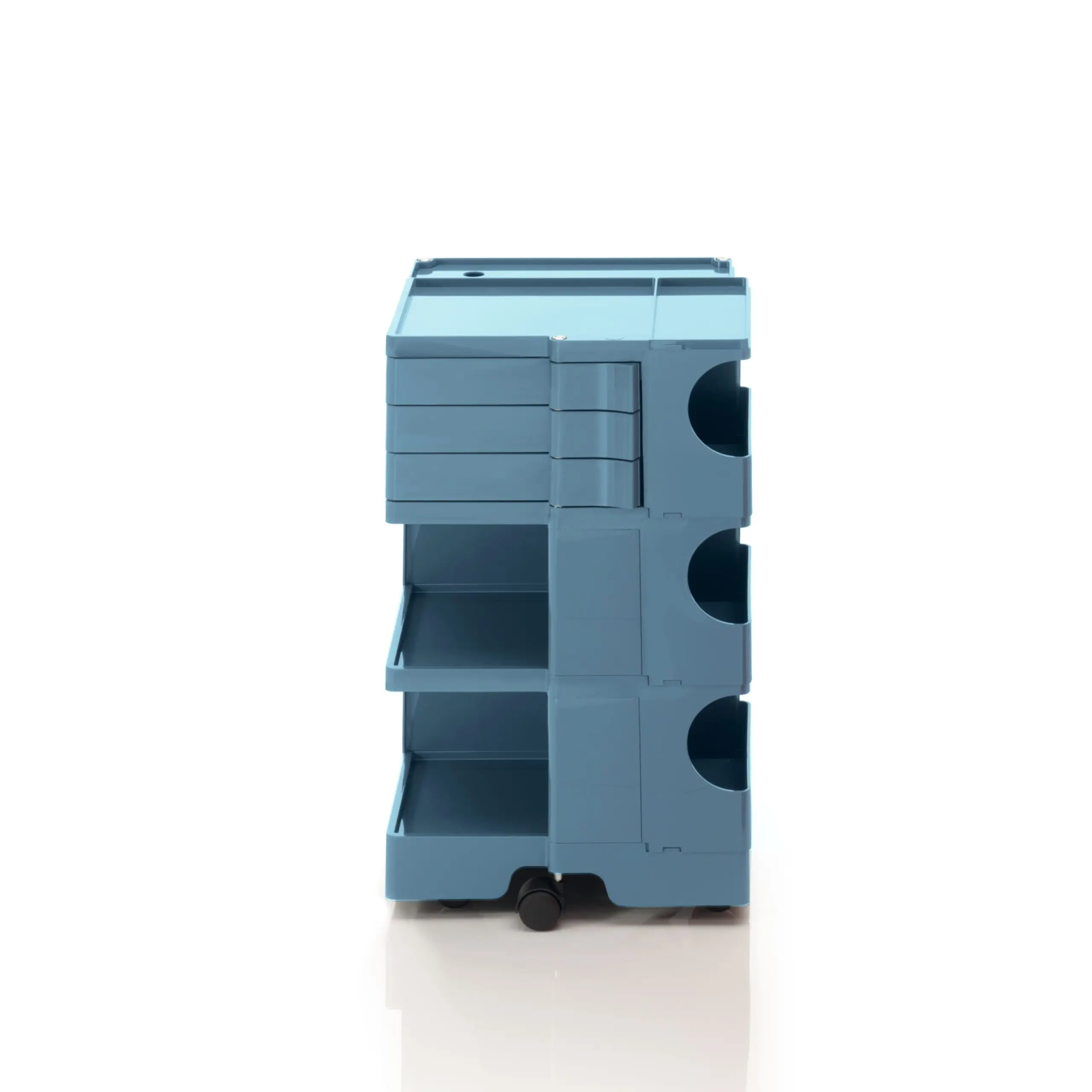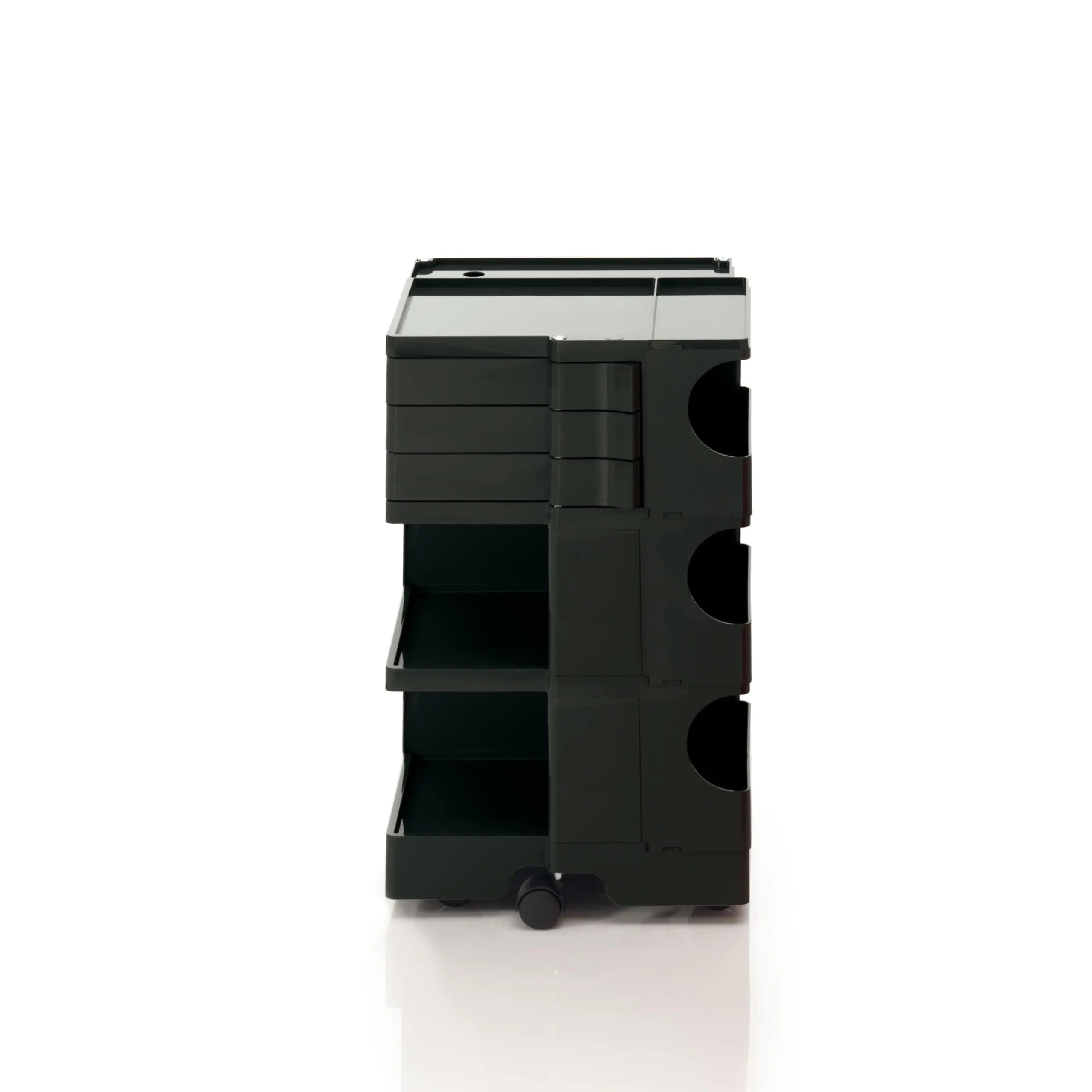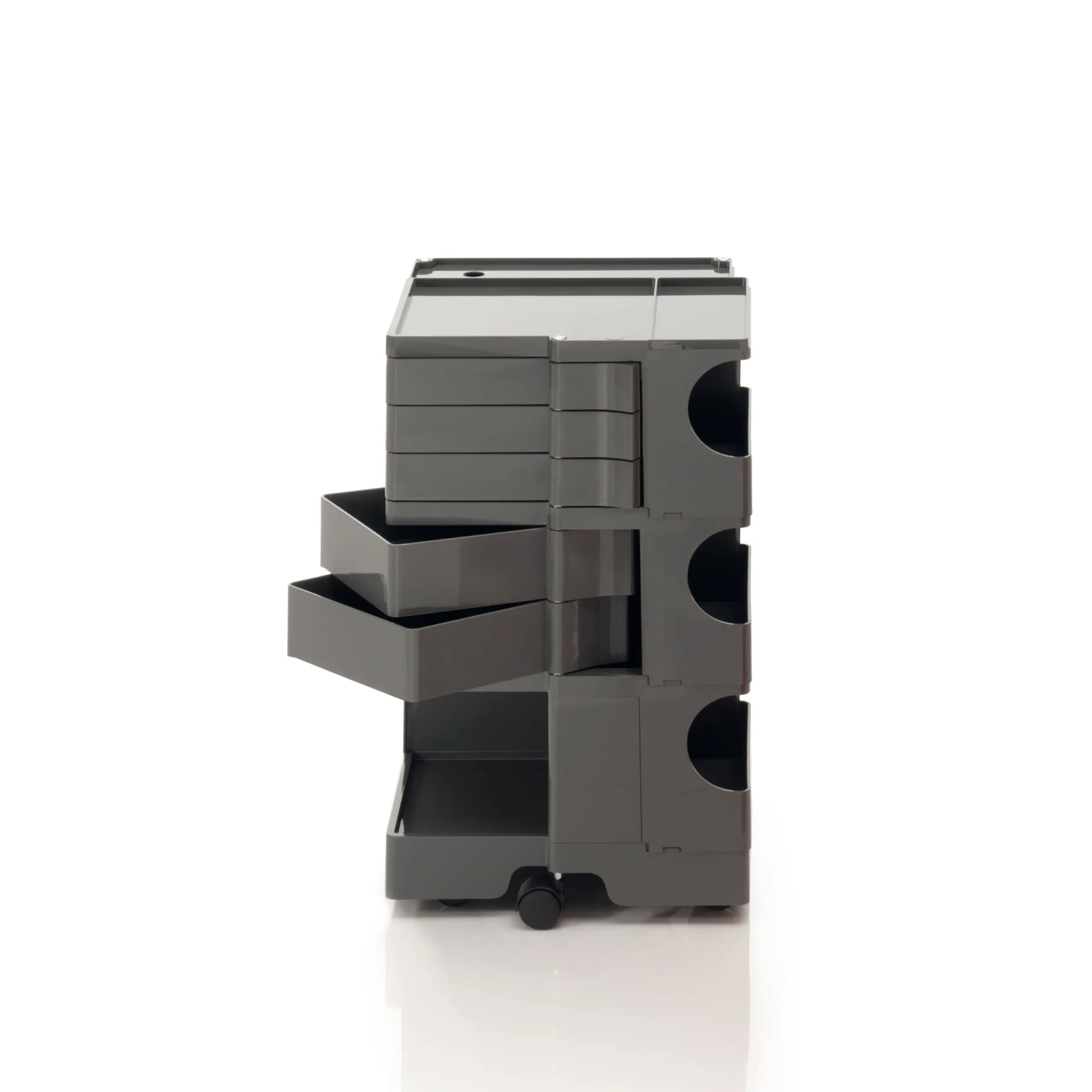 Ez a kocsis tárolóegység egy történelmi tervezői ikon, dinamikus megközelítéssel és nagyfokú sokoldalúsággal. Úgy tervezték, hogy garantálja az egyszerű függőleges modularitást, és a különböző konfigurációk széles skáláját kínálja a tárolás testreszabásához. A fiók- és polcmodulokból álló ABS műanyag szerkezet 5 polipropilén forgó görgőre van szerelve, és 4 különböző magasságú megoldást kínál. A New York-i MoMA és a milánói „Triennale” állandó gyűjteményének része, 1971-ben Smau-díjat kapott.